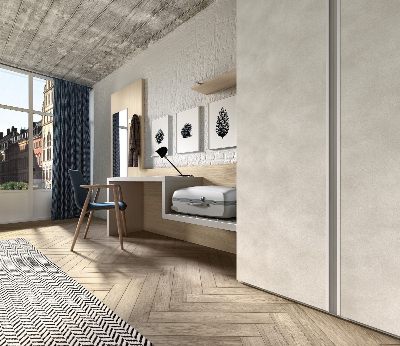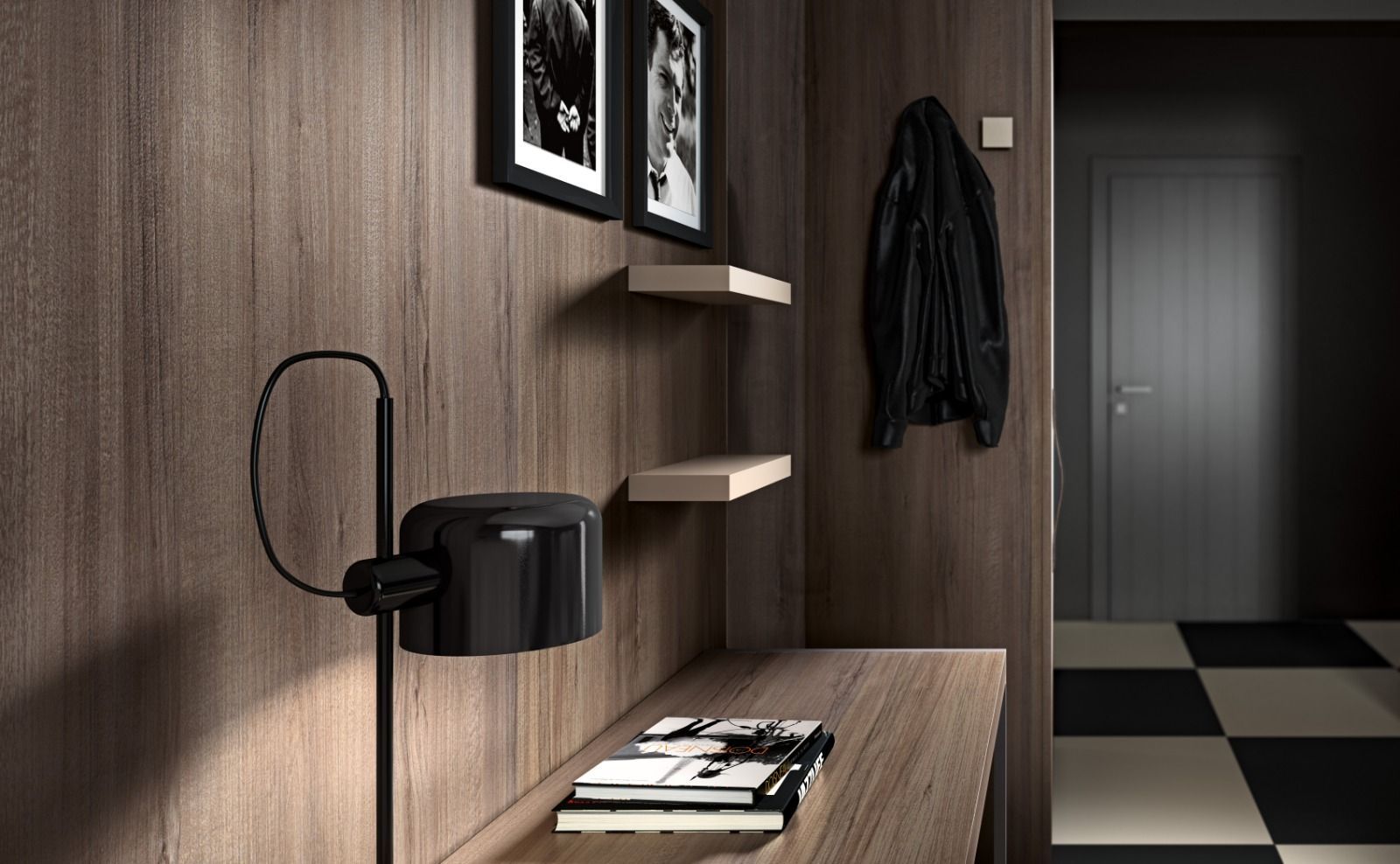 Sedia e sgabello modello Raff. Sedia impilabile con struttura a quattro gambe in acciaio verniciato o cromato, in legno finitura rovere moro o rovere naturale; versione girevole con base tonda in acciaio cromato e inox satinato. Scocca in Baydur® o rivestita in pelle, ecopelle o tessuto.
