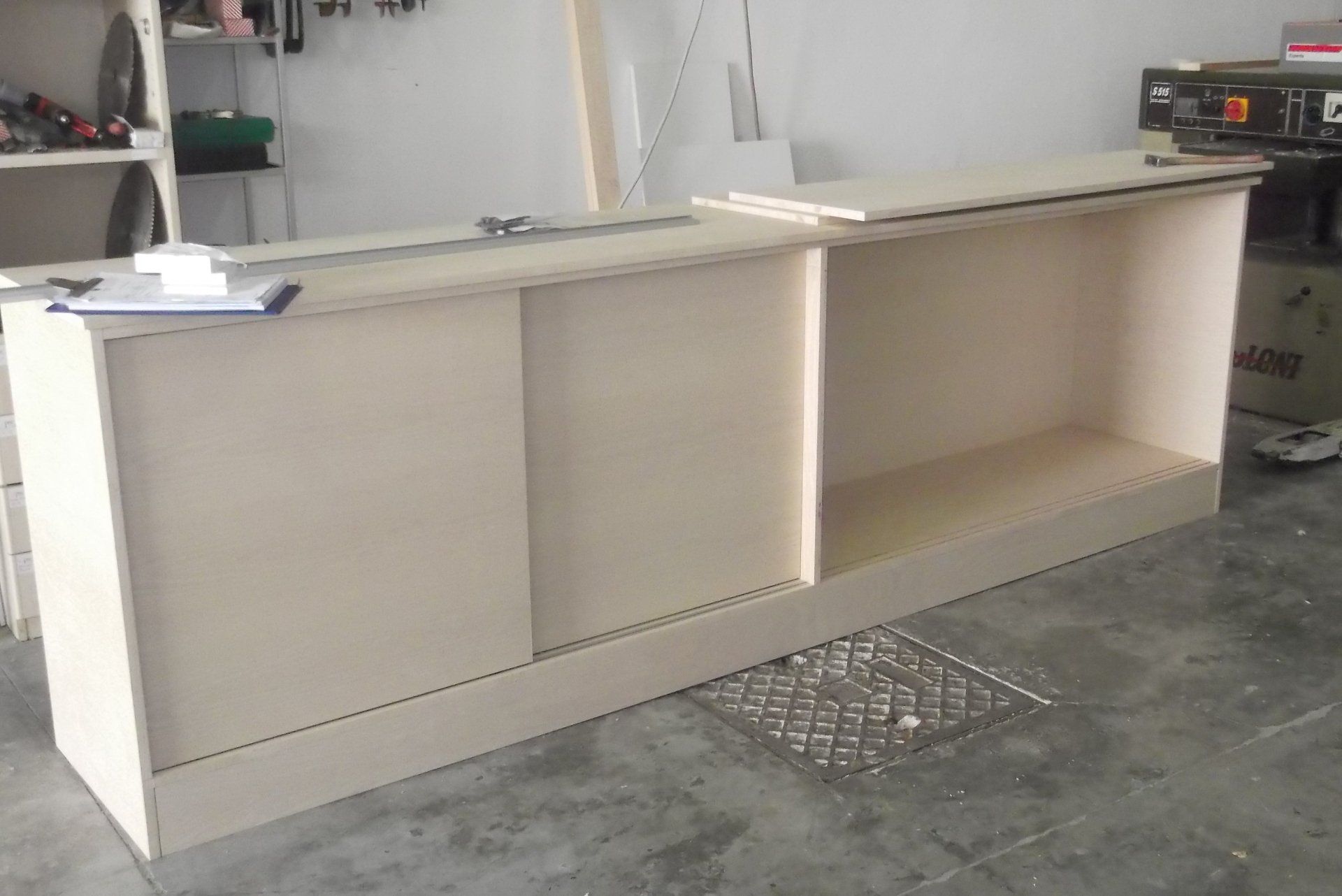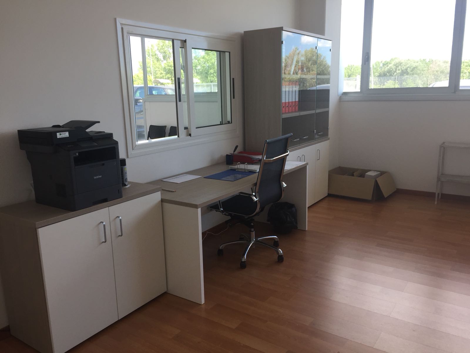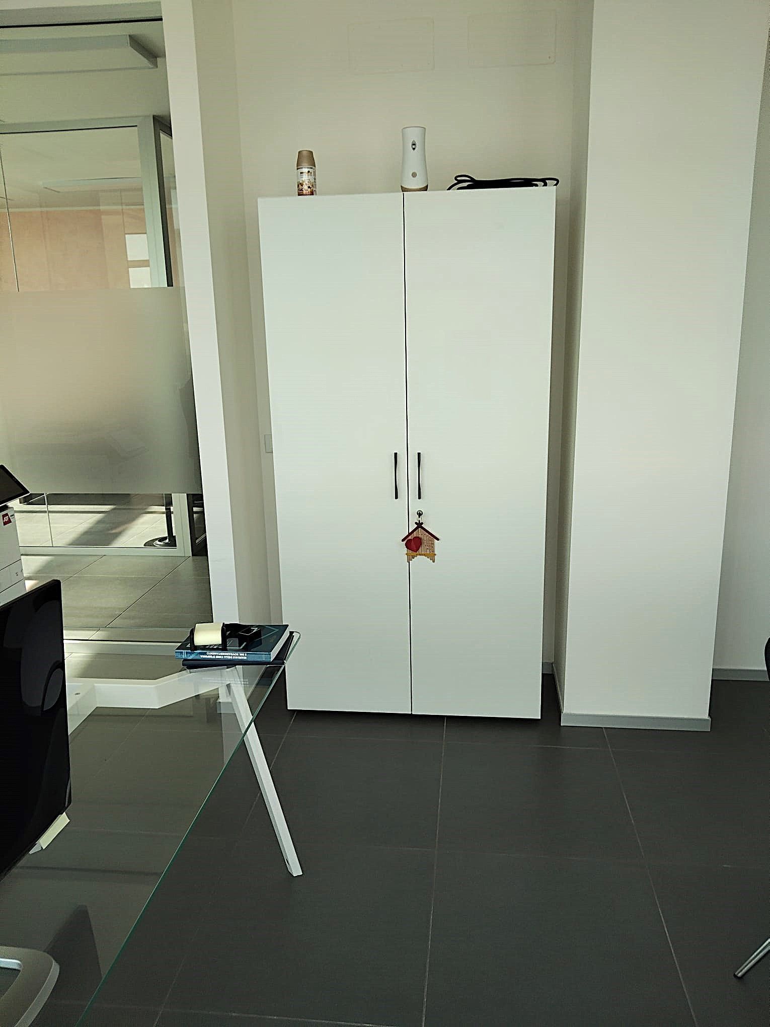 Realizzazione di arredo uffici, ad Ascoli Piceno in finiture Bianco, Nero e Olmo.