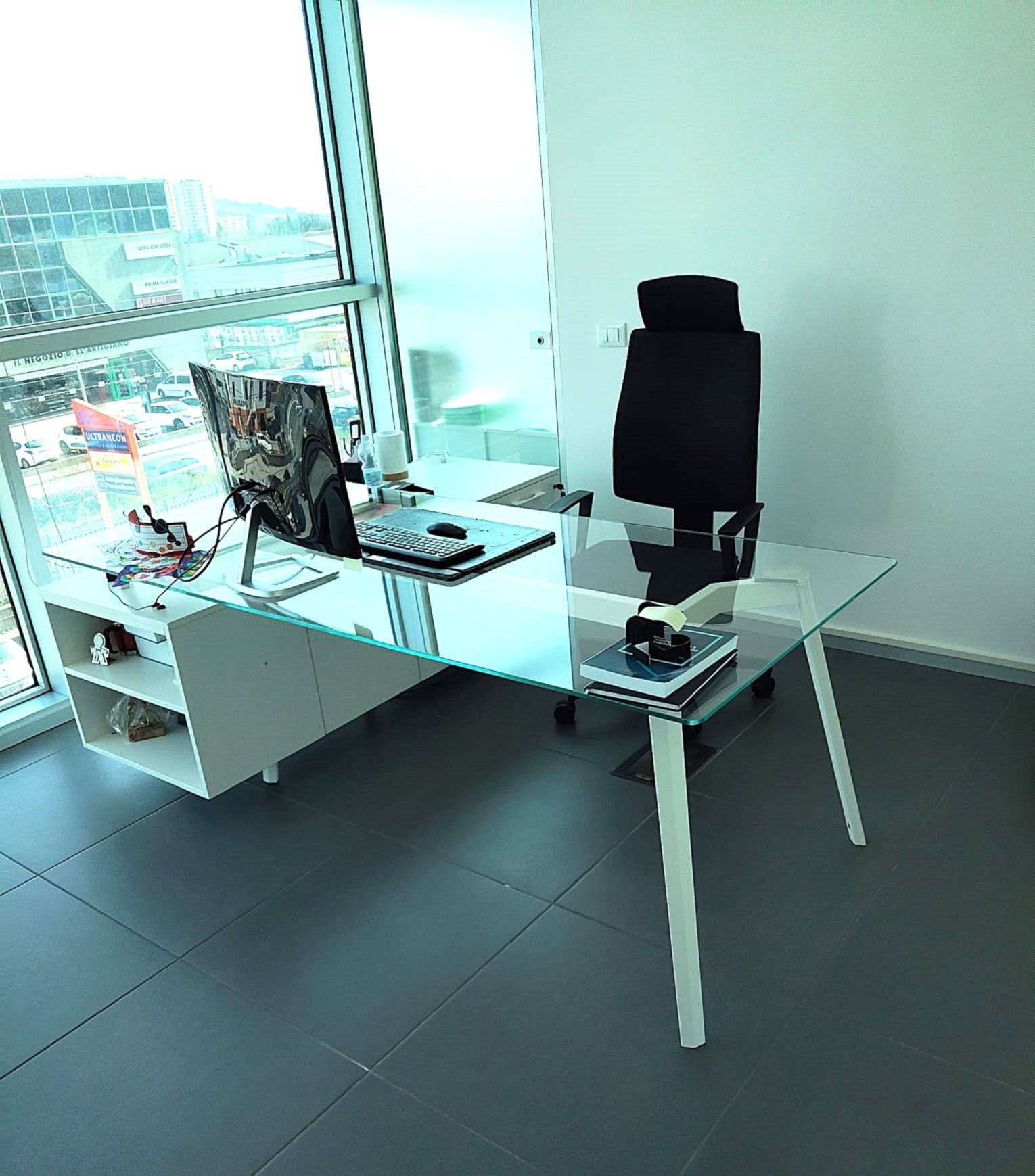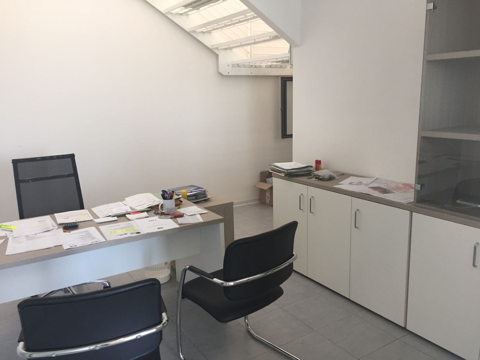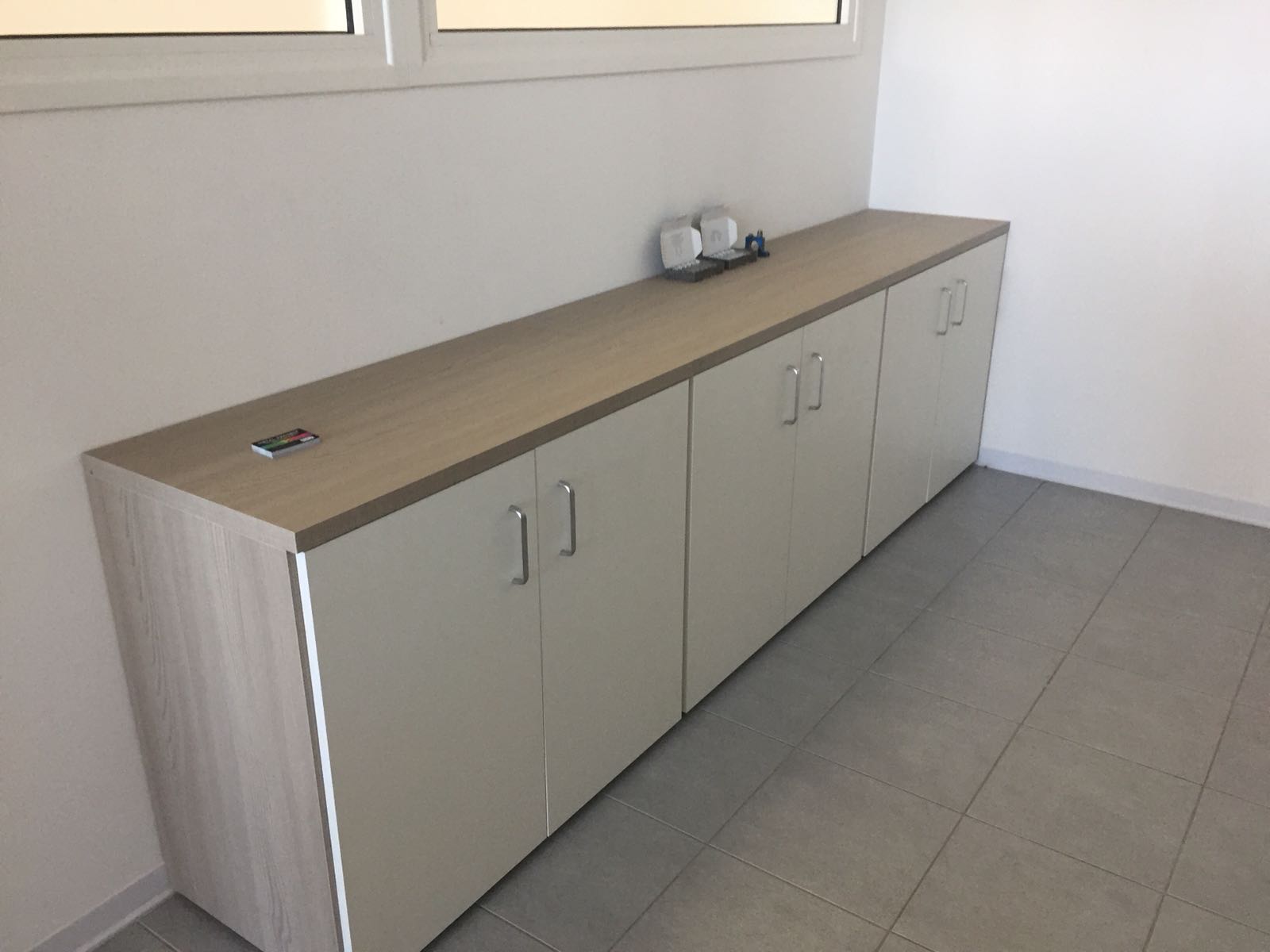 Realizzazione di arredo uffici, ad Ascoli Piceno in finiture Bianco, Nero e Olmo.