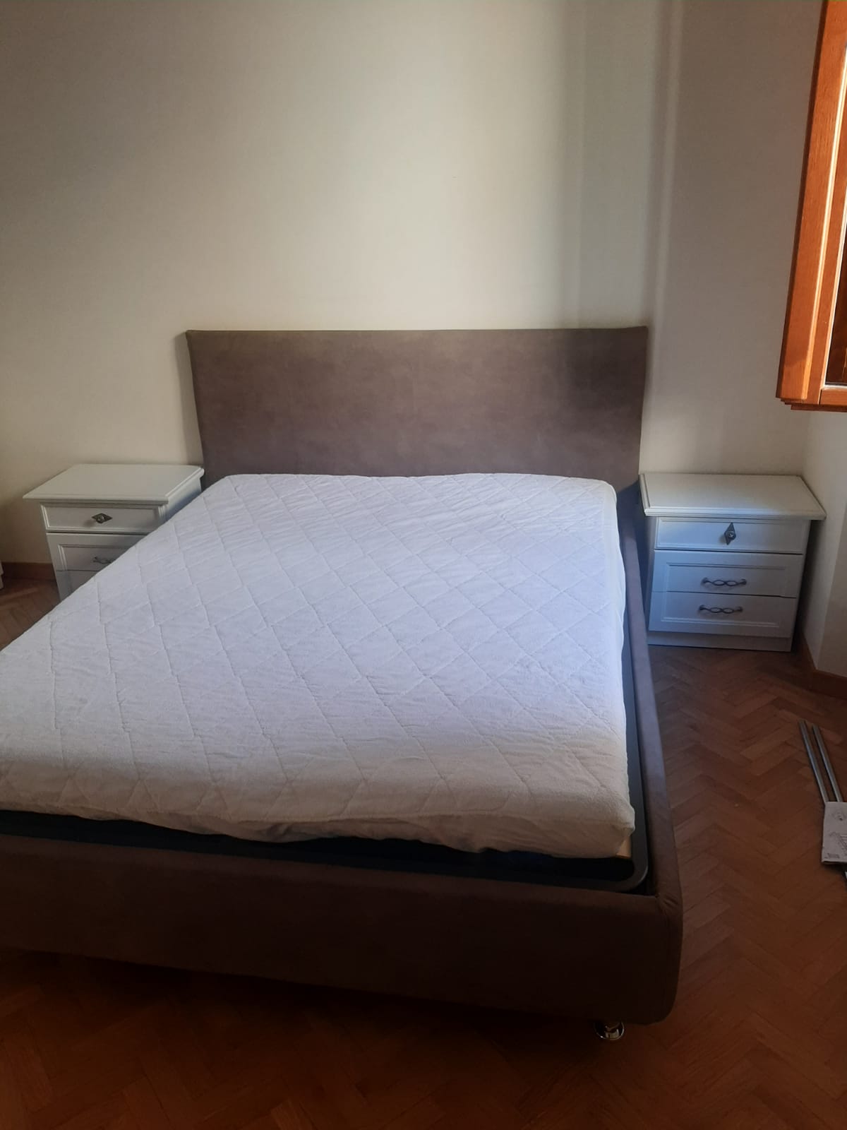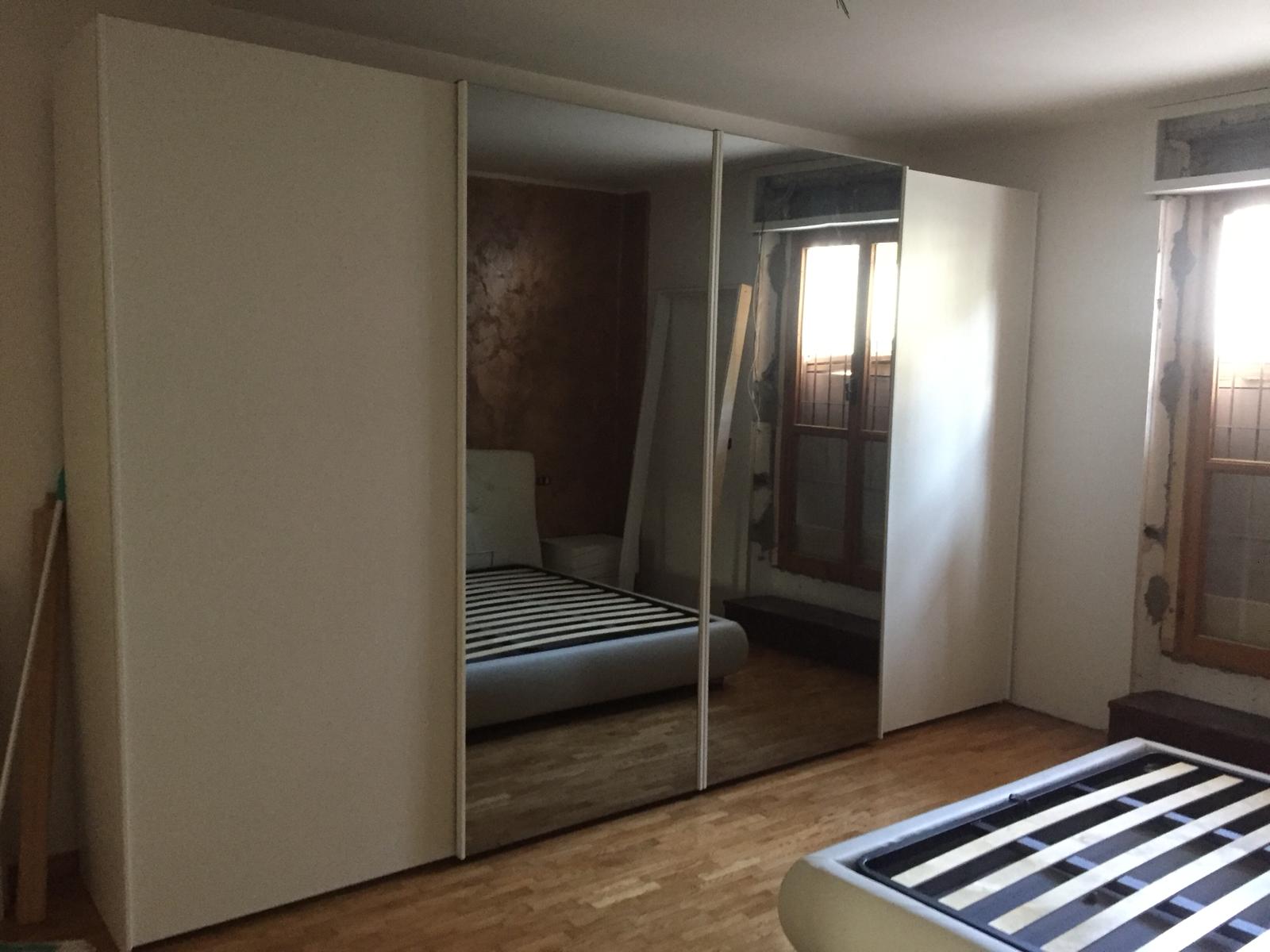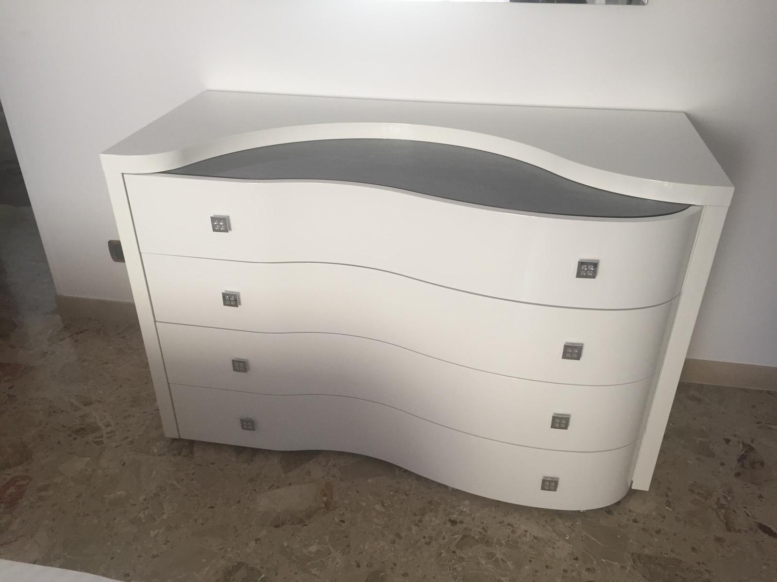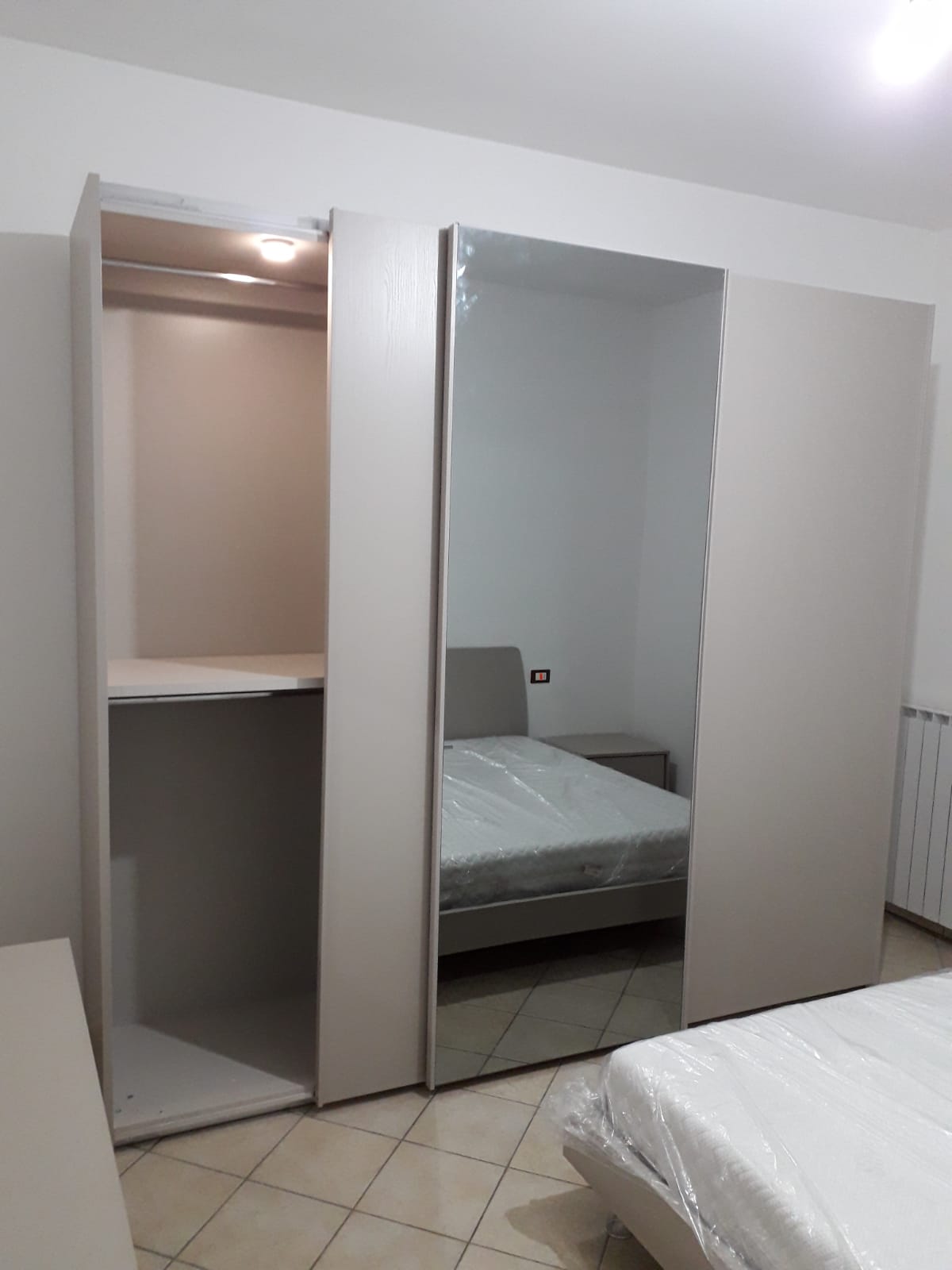 Realizziamo su misura armadi Style in tamburato con 4 ante scorrevoli diamantate, in colore bianco a poro aperto. L’armadio è corredato da 2 comodini e 1 comò in finitura foglia oro.