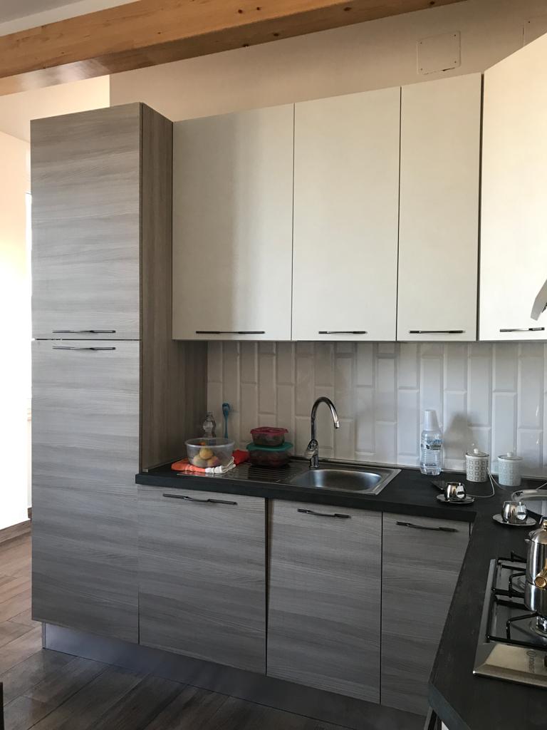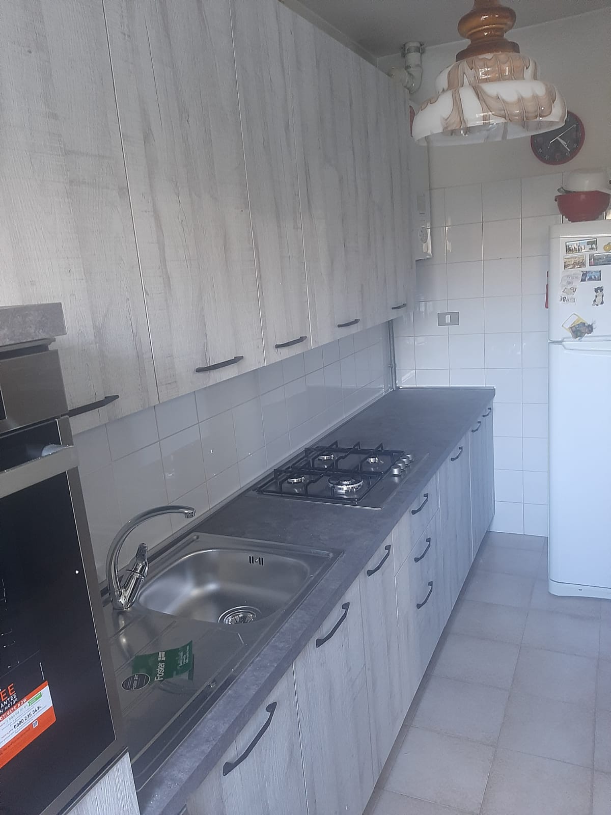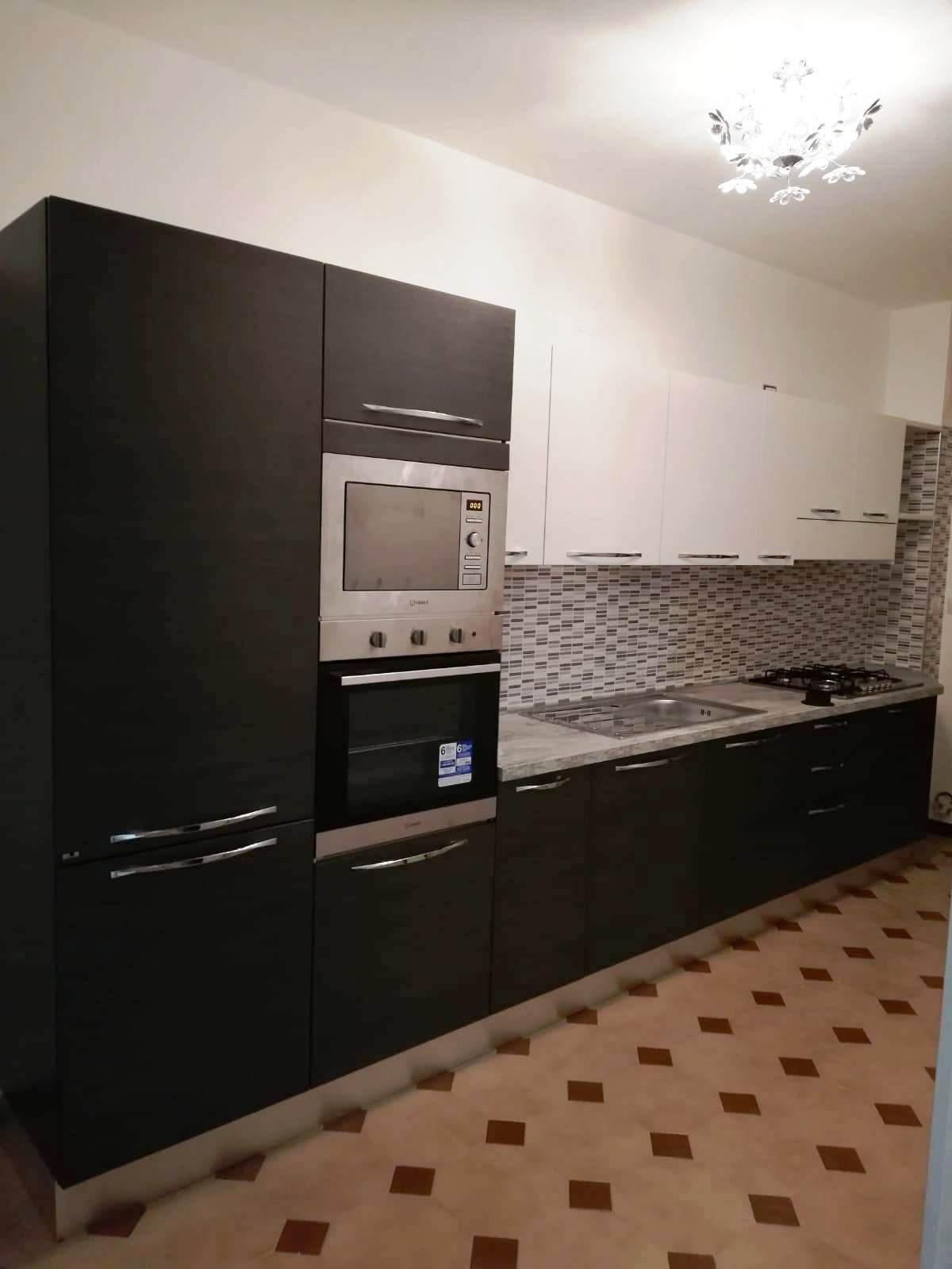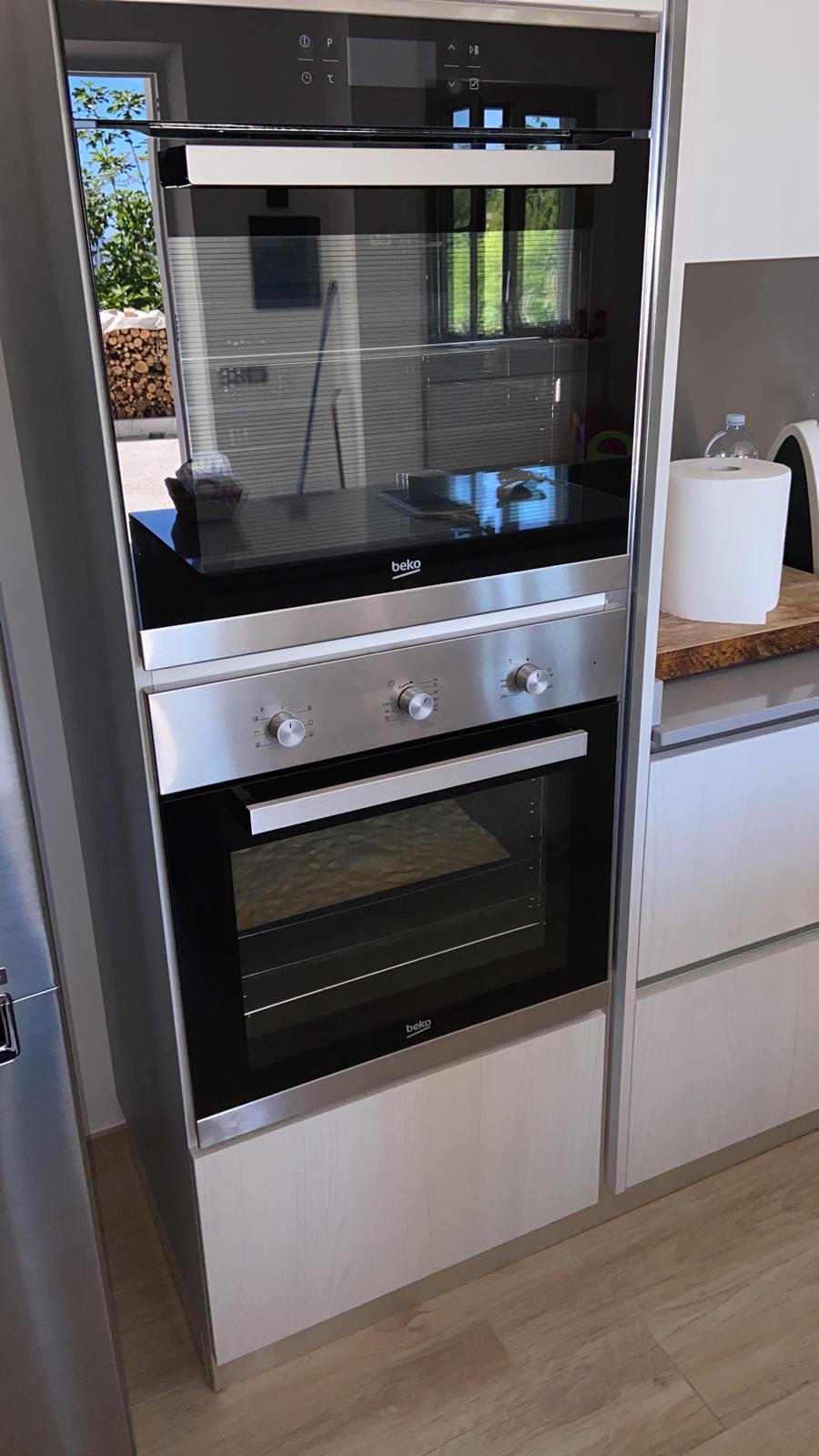 Cucina modello Paprika lineare, completa di elettrodomestici, con ante in melaminico effetto legno sp. 1,8, bordate 4 lati ABS. Colori vari a catalogo.Parete soggiorno modello Living, con ante in melaminico effetto legno sp. 1,8 bordate 4 lati ABS. Colori vari a catalogo.